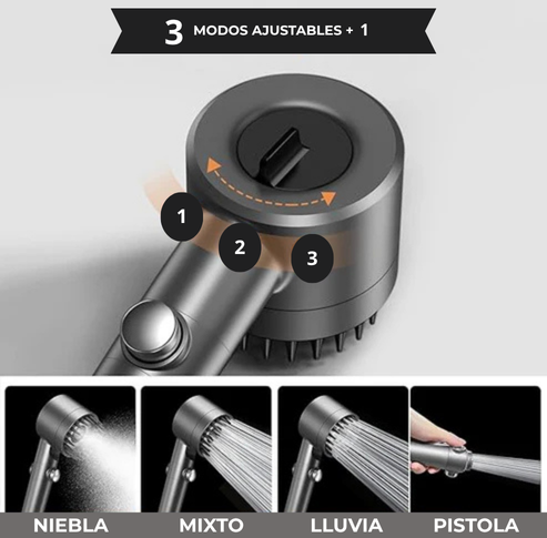 Fácil instalación, solo un roscado y válido para cualquier manguera. Tres modos para que tu ducha se ponga a tu nivel: suave para acariciarte, masajeador para soltarte y potente para despertarte. Y sí, también trae el modo ‘limpia-todo’ para dejar la ducha reluciente. Un toque, y cambias el juego.